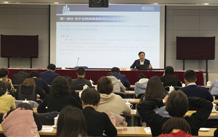 第二講由上海市律師協會建設工程與基礎設施業務研究委員會主任、上海建領城達律師事務所主任周吉高律師主講,主題為《關于施工合同司法解釋二的理解與適用暨影響和要求》。周吉高律師提出,最高人民法院今年年初發布了《關于審理建設工程施工合同糾紛案件適用法律問題的解釋(二)》,這是繼2004年最高院發布的《關于審理建設工程施工合同糾紛案件適用法律問題的解釋》(俗稱司法解釋一)之后,最高院針對此類案件所發布的第二個司法解釋,其重要性非同尋常。周吉高律師圍繞建設工程施工合同效力、合同結算、開工日期及工程順延、反訴及抗辯、質量保證金返還、工程鑒定、優先受償權等重要法律問題進行了深入剖析,對律師應該注意的風險點以及應該采取的對策進行了詳細闡述,該講課對律師辦理建設工程施工合同糾紛案件具有非常強的實務指引作用。