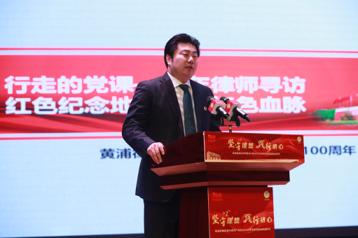 黃浦區(qū)副區(qū)長楊東升在致辭中表示,本次系列活動意在從黨的百年奮斗光輝歷程中汲取精神力量,堅定理想信念,賡續(xù)優(yōu)良傳統(tǒng),不斷凝聚推動黃浦律師事業(yè)發(fā)展和律師隊伍建設的強大力量。在黨建引領下,黃浦律師圍繞中心、服務大局,為黃浦經濟社會發(fā)展貢獻了不可替代的專業(yè)力量,在疫情防控、脫貧攻堅等工作中發(fā)揮了積極作用。律師行業(yè)黨的建設,是新時代黨的建設偉大工程的重要組成部分,廣大黃浦律師要深入學習貫徹習近平總書記“七一”重要講話精神,不斷加強思想政治建設,把擁護中國共產黨領導、擁護社會主義法治作為從業(yè)的基本要求,把個人價值追求與黨和人民事業(yè)緊密聯(lián)系起來,進一步提升政治站位,弘揚偉大建黨精神,不斷加強黃浦律師行業(yè)的向心力、凝聚力、戰(zhàn)斗力,以黨建引領黃浦律師行業(yè)工作開創(chuàng)新局面,著力推動黃浦律師為法治黃浦建設作出新的更大貢獻。