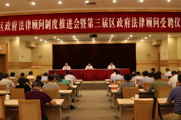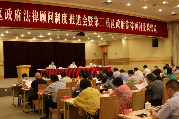 2017年8月30日,奉賢區召開政府法律顧問制度推進會議,動員部署全面建立政府法律顧問制度。區委常委、副區長顧耀明出席會議并講話。區府辦、法制辦主任潘軍主持會議。區政府各部門行政分管負責人,各鎮、街道、社區、開發區分管負責人,區政府法律顧問團成員等六十余人參加會議。