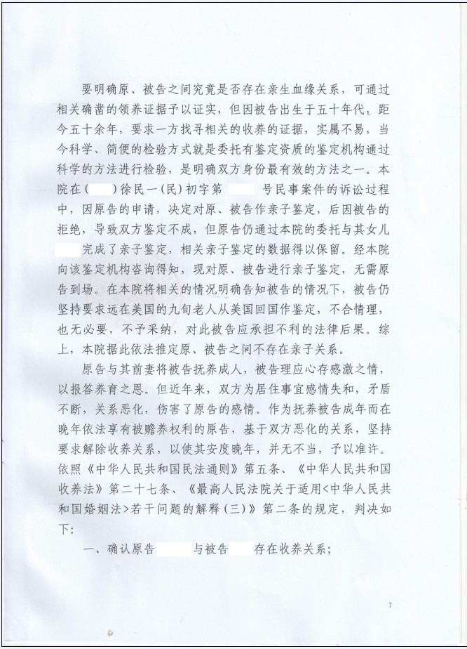 經過近十個月的審理,九月底,徐匯區人民法院就年屆九旬的何老先生訴小女兒解除收養關系的案件,做出了支持九旬老翁訴訟請求解除收養關系的判決。