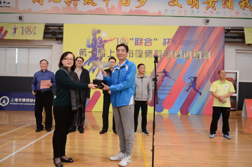 黃浦區(qū)體育局局長(zhǎng)王海銀、黃浦區(qū)司法局局長(zhǎng)劉輝、區(qū)體育局副局長(zhǎng)潘敏虹、司法局副局長(zhǎng)楊冬雨、上海市聯(lián)合律師事務(wù)所主任朱洪超、上海市律師協(xié)會(huì)文體與福利委員會(huì)副主任江憲、黃浦律師工作委員會(huì)主任毛惠剛等領(lǐng)導(dǎo)和嘉賓出席了開(kāi)幕式。“聯(lián)合”杯律師羽毛球比賽到2017年為止已經(jīng)舉辦了十個(gè)年頭,十年來(lái)本賽事已經(jīng)成為上海律師文體活動(dòng)的一個(gè)標(biāo)桿性項(xiàng)目,比賽規(guī)模和影響力不斷擴(kuò)大,在豐富上海律師文體活動(dòng),提高律師身體素質(zhì)方面發(fā)揮了積極作用。區(qū)司法局局長(zhǎng)劉輝在致辭中代表主辦方向十年來(lái)對(duì) “聯(lián)合”杯律師羽毛球賽提供過(guò)大力支持的個(gè)人和單位表示了感謝,并為聯(lián)合律師事務(wù)所主任朱洪超律師頒發(fā)了十周年特別貢獻(xiàn)獎(jiǎng)。劉輝局長(zhǎng)指出聯(lián)合杯的成功更和每年到場(chǎng)助陣,熱情參與的律師羽毛球愛(ài)好者們是分不開(kāi)的。