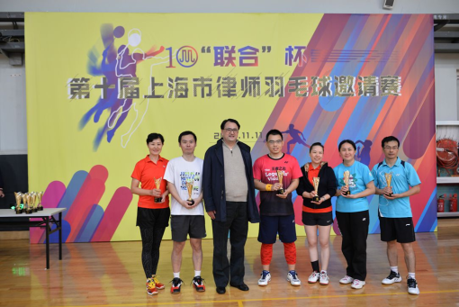 經(jīng)過(guò)一天的鏖戰(zhàn),決出了所有項(xiàng)目的名次。北京盈科律師事務(wù)所上海分所的周哲獲得男子單打冠軍,君澤君律師事務(wù)所的覃融獲得女子單打冠軍,嘉華律師事務(wù)所的蔣凌華與觀韜中茂律師事務(wù)所的馬建國(guó)獲得男子雙打冠軍,市律協(xié)的王延超與翰鴻律師事務(wù)所的姚婕獲得混合雙打冠軍。