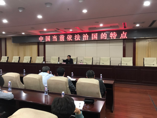 郝教授在講座上對比分析了中西方文化背景下依法治國的特點(diǎn),深入淺出的講解了我國當(dāng)前依法治國要把握的幾個(gè)要點(diǎn):既要堅(jiān)持辦大事、辦難事、辦急事的能力強(qiáng)的體制優(yōu)勢,又要彌補(bǔ)過去容易出事、容易出大事、出了事糾正起來比較難的法治短板,這與現(xiàn)代法治“約束公權(quán)、保障私權(quán)”的一般原理有聯(lián)系,又有區(qū)別;既要反對法律虛無主義,又要防治法律浪漫主義;既要堅(jiān)持人類社會的法治公理,又要把握法治發(fā)展的現(xiàn)階段特點(diǎn)——“新訓(xùn)政”。
