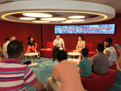夏令營共有3個項目:法律沙龍、法治演講和參觀活動。法律沙龍邀請了摩拜單車的管理人員、大學教授、各行業的專家及學生代表,在主持人的引導下,尚佳律師事務所湯煒華律師就共享單車的法律及管理問題各抒己見,氣氛活躍,湯律師主要就共享單車押金問題、共享單車使用過程需注意的問題與大家交換了意見看法。摩拜方的工作人員陶經理就目前摩拜單車如何管理和新政出臺后未來的管理方向做了介紹,健康醫學院施主任就共享單車致未滿12周歲學生殞命一案引發的法律及管理上的思考發表意見。楊浦區電視臺記者就共享單車的問題新聞單獨采訪了湯律師。