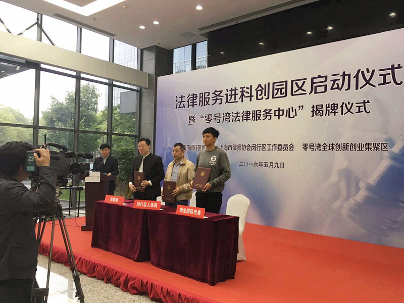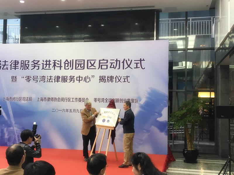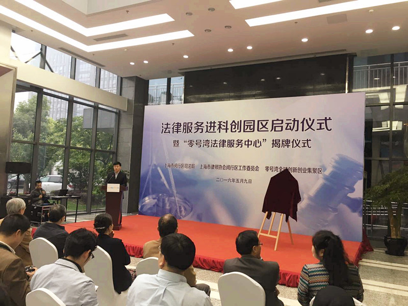 閔行區人大主任副主任沈健和上海交通大學黨委委委員、副校長吳旦教授為“零號灣法律服務中心”揭牌?!傲闾枮撤煞罩行摹痹O在上海零號灣全球創新創業集聚區,以此為載體,閔行區司法局、上海市律師協會閔行區工作委員會與上海零號灣創業投資有限公司合作開展法律服務進園區活動,組建“閔行區知識產權法律顧問團”和“張鵬峰領軍人才服務團隊”為閔行區零號灣全球創新創業集聚區內的科創企業提供法律咨詢和公證咨詢、法律知識講座和法律沙龍、為創業團隊提供法律導師,以及領軍人才對接創業人才提供包括代理訴訟、仲裁在內的深度法律服務等公益性法律服務項目。