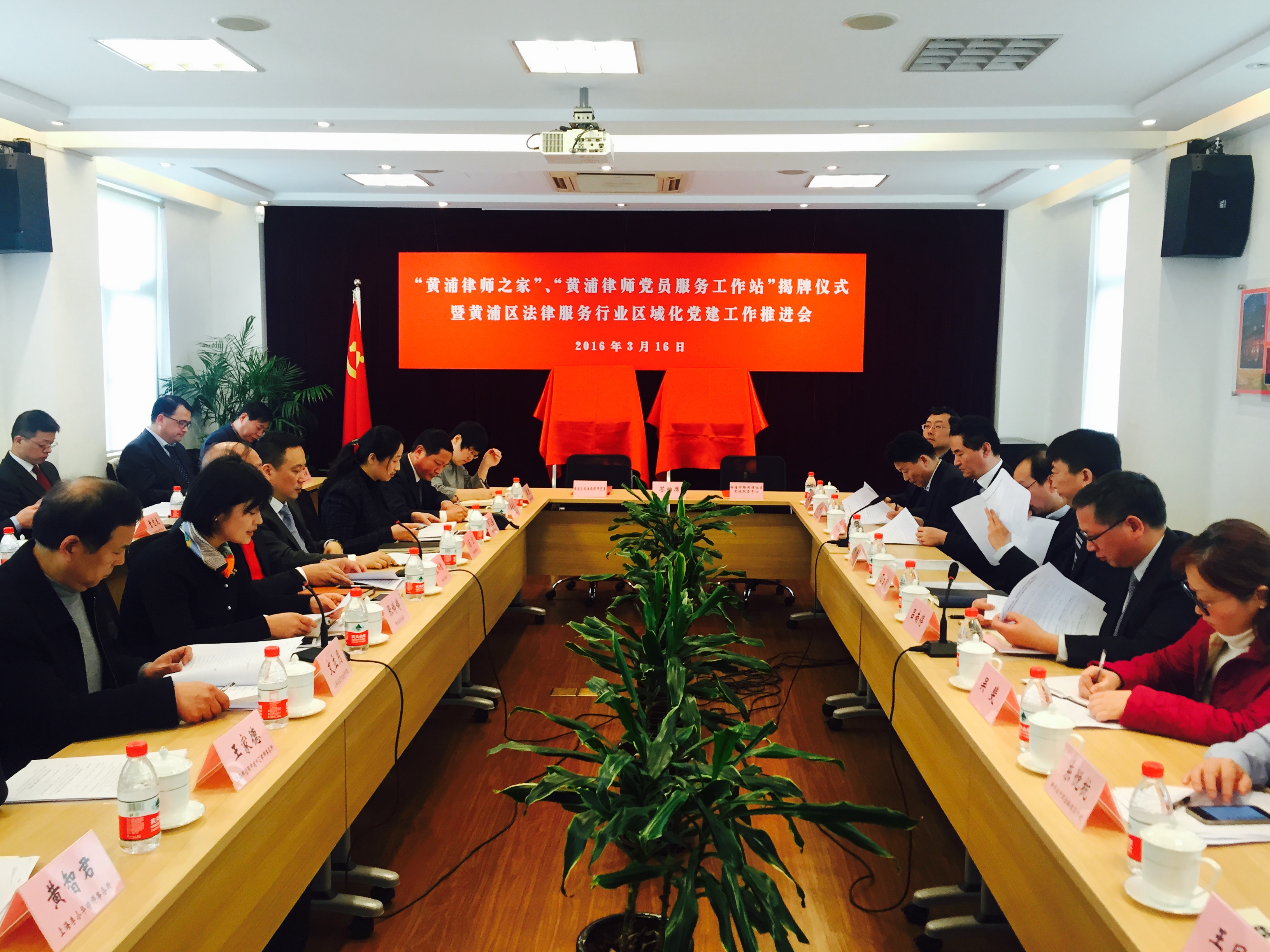 3月16日下午,黃浦區司法局在淮海中路街道社區黨建服務中心,召開了“黃浦律師之家”、“黃浦律師黨員服務工作站”揭牌儀式暨黃浦區法律服務行業區域化黨建工作推進會。黃浦區委常委、組織部長丁寶定;黃浦區副區長呂南停;華東政法大學校長、上海社會科學院法學所所長葉青;上海市律師協會會長俞衛鋒、副會長王嶸;黃浦區委組織部副部長、區社會黨工委副書記吳斐;區司法局黨委書記張偉舫、黨委副書記、局長張婷婷等領導出席了會議。