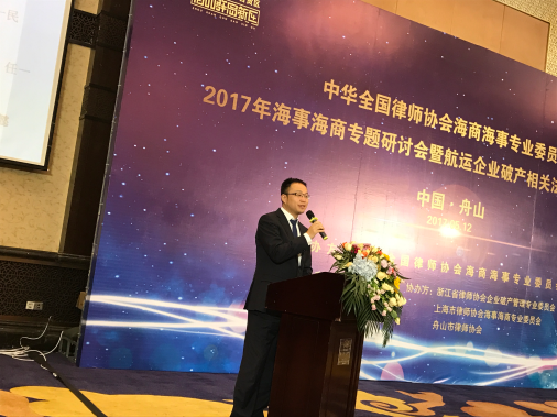 5月12日,2017年海事海商專題研討會暨航運企業破產相關法律問題研究會在舟山召開。本次會議由中華全國律師協會海商海事專業委員會主辦,浙江省律師協會破產專業委員會、上海市律師協會海事海商業務研究委員會、舟山市律師協會協辦。中華全國律師協會海事海商專業委員會副主任、市律協海事海商業務研究委員會主任陳柚牧致辭,90余位來自全國各地海事律師、法官、航運企業實務人員等參加會議。