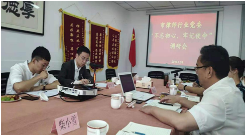 7月24日下午,烈日炎炎,上海市律師行業黨委委員、市律協副會長徐培龍一行冒著酷暑赴寶山進行“不忘初心、牢記使命”主題教育調研活動。