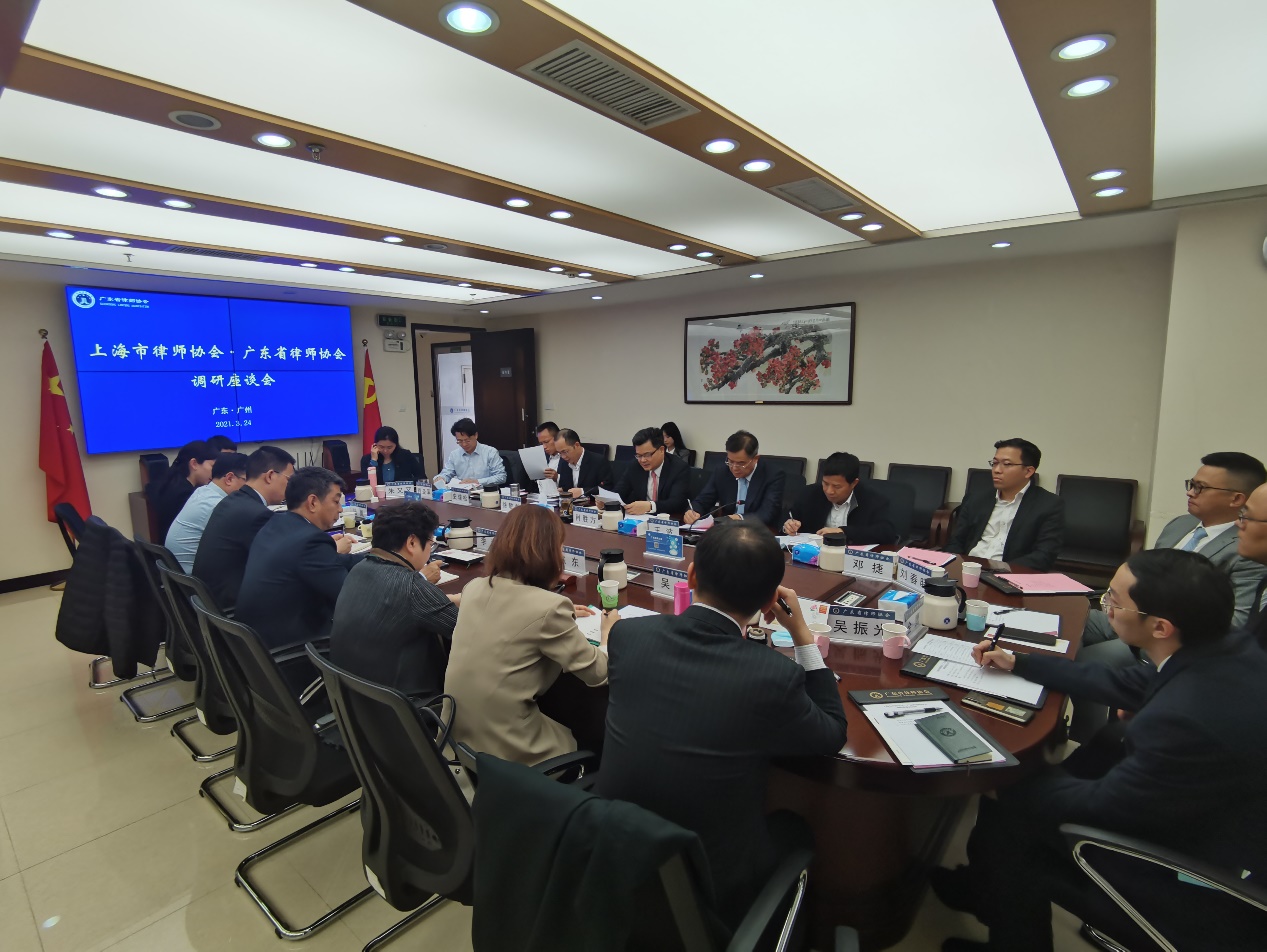 3月24日下午,上海律師會長季諾、副會長徐培龍、秘書長陳東、青年律師工作委員會主任陸胤、信息化工作委員會主任陳巍等赴廣東律協調研座談。雙方就律師協會建設、青年律師培養、信息化建設等工作進行座談交流。廣東律協會長肖勝方、副會長王波、秘書長徐敏彪,廣東省司法廳律師工作管理處副處長楊泳,廣東律協副秘書長史璞松、鄧捷、肖圣軍、青年律師工作委員會劉春曉等參加了座談會。