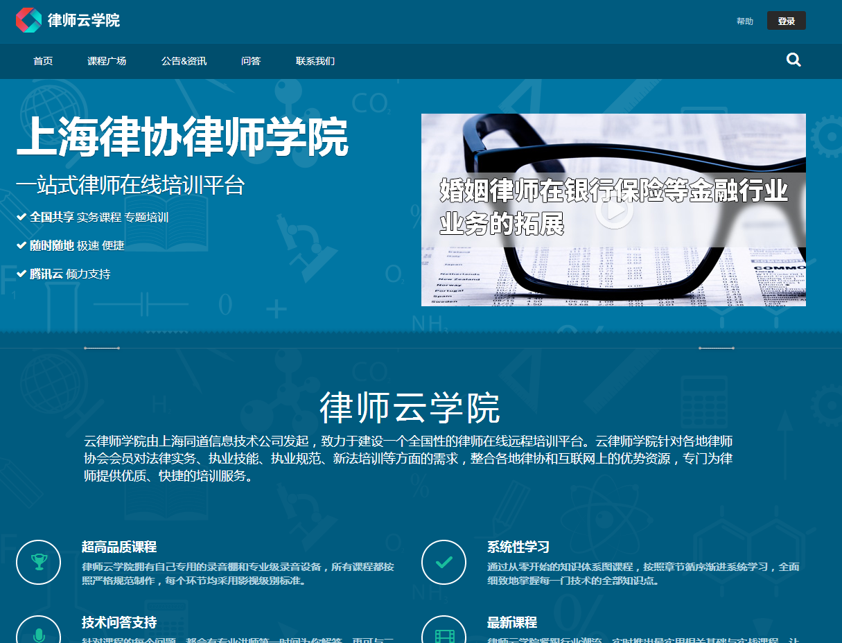 為律師會員提供網上視頻課件學習的云平臺,致力于建設一個全國性的律師在線遠程培訓平臺。