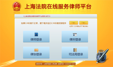 | 功 能: | 律師服務平臺包含5大類16項網上服務功能:網上立案、網上辦理、網上溝通、網上輔助、網上評價。平臺目前只授信給上海注冊并獲取“律師一卡通”的律師。 |