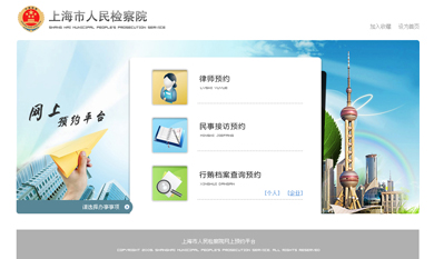 | 功 能: | 上海市律師會見預約平臺(以下簡稱為:律師會見預約平臺)由上海市公安局監所管理總隊負責建設維護。該平臺為律師提供了通過互聯網辦理律師預約會見嫌疑人、被告人的便捷渠道,是上海市公安局落實公安部十九項便民措施的重要舉措之一。 |